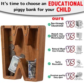 Ladenk Cofrinho de madeira extra grande de 30,5 cm para meninos e meninas - 🎁?Extra grande, mais capacidade? Ouvimos as vozes de muitos clientes, disseram que nosso banco de cartas não é grande o suficiente, então fizemos um banco extra maior para economizar mais dinheiro, este tamanho de banco de cartas é de 30 cm, o suficiente para economizar as moedas e o dinheiro das crianças! - 🎁?Brinquedos educativos MONTESSORI? Veja através do cofrinho na frente do uso de acrílico transparente, pode atrair as crianças para observar o crescimento das economias, para que elas gostem de economizar, desenvolver o hábito de aprender a economizar desde cedo. Escolha um banco com as iniciais correspondentes aos nomes das crianças, um presente exclusivo para meninos e meninas de qualquer idade. - 🎁?Artesanato de alta qualidade?Nosso banco é feito de nogueira ou carvalho de alta qualidade, mais resistente e durável, o banco foi polido várias vezes, tratamento de óleo natural não tóxico, tornando a aparência mais suave e confortável. - 🎁?Fácil de abrir?Quando você quiser abri-lo, você só precisa desparafusar alguns parafusos, remover o vidro para tirar as moedas e depois colocá-lo de volta para continuar a usar, porque é feito de madeira de alta qualidade, pode ser utilizado por um longo tempo, seguro e ecológico - 🎁?SERVIÇO LADENK?Se você tiver alguma dúvida no banco, ou precisar que personalizemos o seu banco, , fornecemos serviço de gravação a laser de nome completo, podemos gravar o conteúdo que você deseja na frente e no verso, isso beneficiará seu filho por toda a vida.