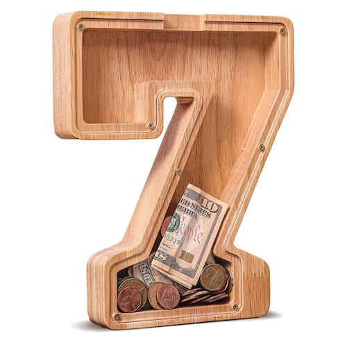 - 👍 Design exclusivo — Este é um banco de dinheiro em forma de número de 9 polegadas, feito de madeira 100% orgânica. A tampa de vidro acrílico transparente permite ver o interior da moeda e avaliar o progresso da economia de dinheiro.