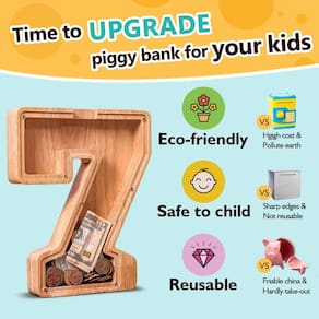 - 👍 PREMIUM EM QUALIDADE E SERVIÇO PÓS-VENDA - Temos orgulho da qualidade e originalidade de nossos cofrinhos de madeira para adultos e crianças, e é por isso que eles vêm com uma garantia de satisfação para garantir sua felicidade total.