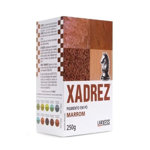 Pigmento Em Pó Xadrez 250G Marrom Pigmento à base de óxido de ferro que pode ser utilizado nos mais diversos campos de aplicação; Indicado para pigmentar Tinta; Cor: Marrom; A mistura do pigmento deve ocorrer sempre no material seco, ou seja, com a pedra, areia, cimento. Desta forma, é garantida a dispersão e homogeneização do pigmento, evitando irregularidades de cor na aplicação; Utilizado para colorir argamassa e concreto. Ean: 7891106002233