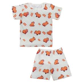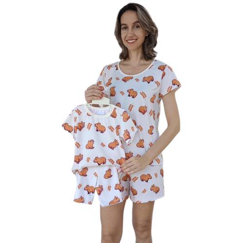 Pijama Adulto e Infantil Manga Curta Estampa Capivara