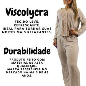 Feito com tecido de Vyscolycra, este pijama oferece uma sensação suave e leve, proporcionando conforto excepcional durante toda a noite. Além disso, seu tecido leve e refrescante permite que a pele respire livremente, evitando qualquer sensação de desconforto.