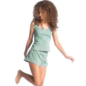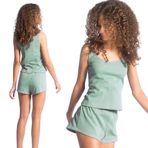 A regata, com suas alças finas, oferece liberdade de movimento e uma sensação refrescante, ideal para as noites mais quentes. Enquanto isso, o short, com sua modelagem confortável e cintura elástica, proporciona um ajuste perfeito e confortável, garantindo uma experiência de sono tranquila.