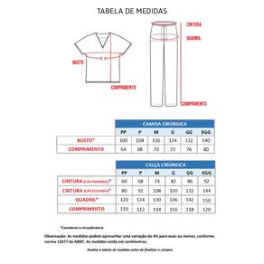 Para ajudar na sua escolha de tamanho: A Modelo Ana veste tamanho PP, tem 1,63 de altura e pesa 51 kg. O Modelo Tiago veste tamanho P, tem 1,75 de altura e pesa 78kg.