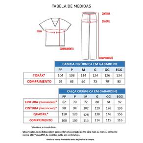 O Pijama cirúrgico ou Scrub também chamado de Uniforme Cirúrgico (Calça + Camisa) é confeccionado em gabardine, 95% poliéster e 5% elastano.