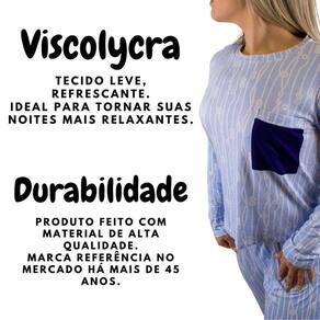 Feito com tecido de Vyscolycra, este pijama oferece uma sensação suave e leve, proporcionando conforto excepcional durante toda a noite. Além disso, seu tecido leve e refrescante permite que a pele respire livremente, evitando qualquer sensação de desconforto.