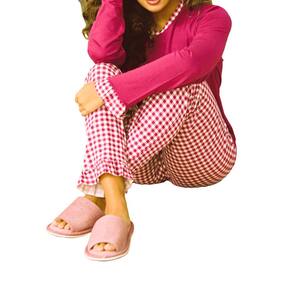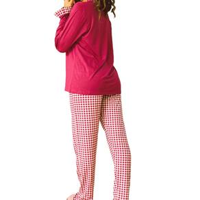 Aqui temos uma peça para ser usada em um momento de descanso o Pijama Feminino Longo Estampa Xadrez Gola Careca Punho Tornozelo Babado sua composição é de 96% viscose e 4% elastano temos as opções nas cores: Vinho, e Marinho, nos Tamanhos P, M, G e GG.
