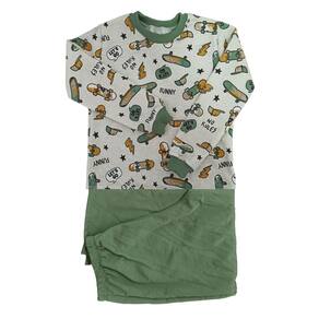 Pijama infantil de inverno manga longa menino quentinho moletinho flanelado 6 a 12 anos - Verde - 8