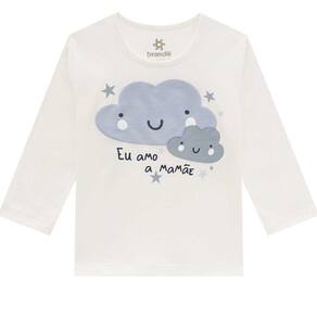 Blusa com linda estampa de nuvenzinhas e estrelinhas com a frase EU AMO A MAMÃE, uma graça.