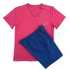 Pijama infantil masculino Modo Avião Modelo com short em malha lisa 100% algodão com Biopolimento e camisa em malha viscose e algodão trabalhada em fio tinto. Gola V fina com detalhe de debrum. Fabricado pela Recco.