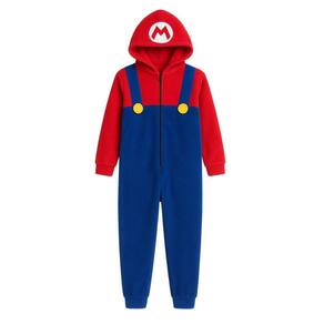Inspirado no lendário personagem Mario Bros, este macacão possui detalhes incríveis como suspensórios decorativos com botões amarelos, além do capuz estilizado com a letra "M" em destaque. As cores vibrantes azul e vermelho completam o visual característico deste querido herói, ideal para festas temáticas, eventos ou simplesmente como pijama super divertido.