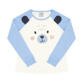 Nosso conjunto de pijama é composto pela blusa e a calça em tecidos meia malha na cor off white com hortênsia. A blusa de manga longa possuí estampa frontal de ursinho com orelhas interativas e a calça com elastano na cintura também possuí estampa de patinhas de urso no joelho. Assim a hora do soninho se torna mais leve, quentinha e alegre!\n