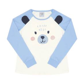 Nosso conjunto de pijama é composto pela blusa e a calça em tecidos meia malha na cor off white com hortênsia. A blusa de manga longa possuí estampa frontal de ursinho com orelhas interativas e a calça com elastano na cintura também possuí estampa de patinhas de urso no joelho. Assim a hora do soninho se torna mais leve, quentinha e alegre!\n