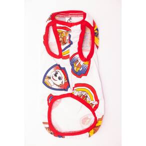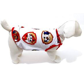 Pijama confeccionada em malha PV poliéster com viscose na cor branca; Estampa temática do Personagem Patrulha Canina; Acabamento em cotton vermelho; Tamanho : EG; Cor: Branca; Medidas aproximadas: 47 cm de comprimento, 65 cm de circunferência torax, 41 cm pescoço; Deixe seu Pet super estiloso com seu personagem favorito. Marca: Não Informado