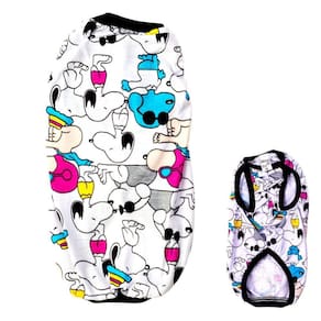 Pijama para cachorro estampa snoopy - tamanho G - pijama confeccionada em malha pv poliéster com viscose na cor branca; - estampa temática do personagem snoopy; - acabamento em cotton preto; Medidas aproximadas: - TAMANHO G: Pescoço: 30 cm de circunferência Abdômen / torax: 42 cm de circunferência Comprimento: 40 cm Além de muito confortável e lindo, deixará seu pet ainda mais charmoso Marca: Nicapet Ean: 7436362274149
