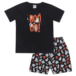 Pensando no conforto do seu amorzinho na hora de ir dormir a Good Night by Pulla Bulla trouxe esse conjuntinho confeccionados em meia malha. Uma Camiseta na cor Preta com uma divertida estampa de fantasminha e para completa o look uma Bermuda na cor Preta com estampas de fantasminhas, proporcionando noites ainda mais confortáveis e agradáveis para o seu pequenino.\n