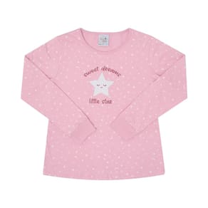 Os pijamas estão cada vez mais estilosos e confortáveis para as meninas! O conjunto na cor rotativo lavanda é confeccionado em meia malha e cotton leve e possuí a blusa de manga longa com estampa frontal de estrela e escrita "Doces sonhos/Pequena estrela". A calça além de super quentinha, possuí elastano no cós para maior conforto durante a noite. \n