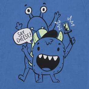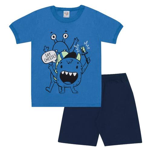 A Good Night by Pulla Bulla traz um conjuntinho super animado para as noites do seu menininho. Uma Camiseta confeccionada em meia malha na cor Azul Royal com estampa de monstrinhos e uma Bermuda confeccionada em meia malha na cor Azul marinho, um look perfeito para alegrar ainda mais as noites de seu pequenino.\n