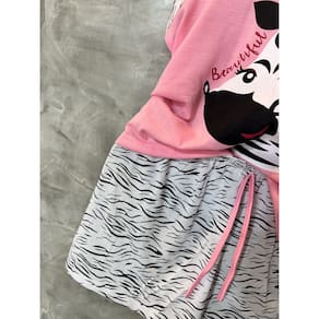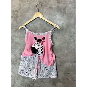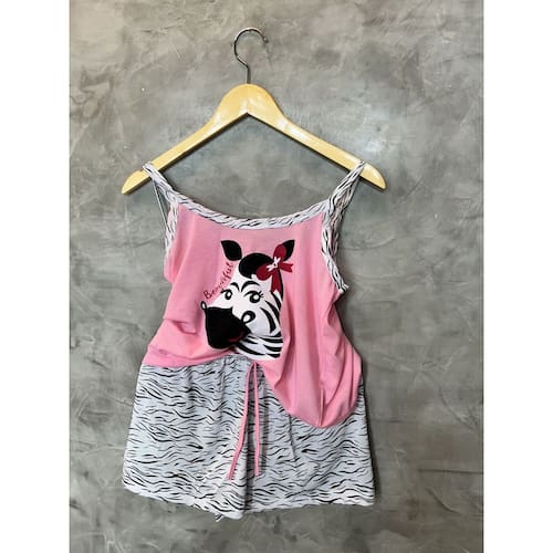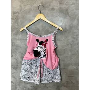 Pijama Verão alça Estampado em Zebra em algodão, short com amaração - Rosa - GG