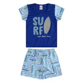 Garanta noites de sono cheias de estilo para o seu pequeno com este Pijama Masculino Infantil. Com uma camiseta de manga curta azul royal e uma estampa divertida de surf, além de uma bermuda estampada, este conjunto é perfeito para meninos cheios de energia que adoram a vibe do verão.