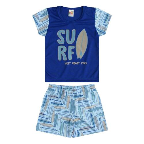 Pijama Verão Infantil Menino Azul Estampa Surf - Pijama confortável com camiseta azul royal e bermuda estampada, inspirado no surf.