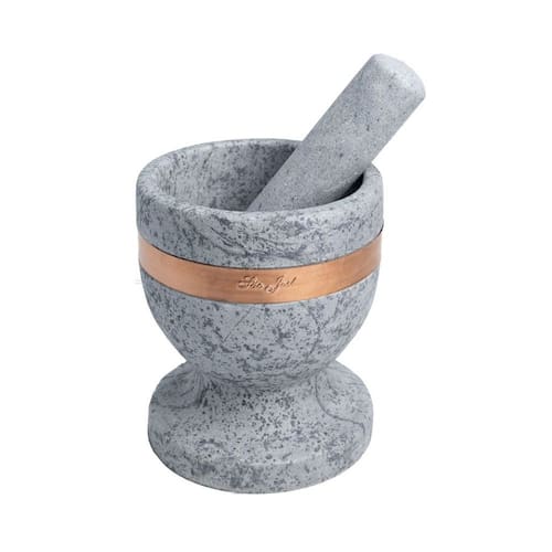 O pilão em pedra sabão com detalhes em cobre é ideal para quem gosta de preparar temperos, ervas, alho, pimentas e especiarias de forma tradicional, prática e com muito mais sabor. A pedra sabão é resistente, não retém cheiro e ajuda a triturar os ingredientes com facilidade, preservando aroma e textura dos alimentos, enquanto o cobre traz um acabamento elegante e reforça a durabilidade da peça. Muito utilizado na cozinha do dia a dia, ele também valoriza a decoração, deixando o ambiente com um visual rústico sofisticado. É perfeito para quem aprecia culinária artesanal, busca eficiência no preparo e quer um utensílio bonito, funcional e durável, que une tradição, qualidade e praticidade em um único produto.