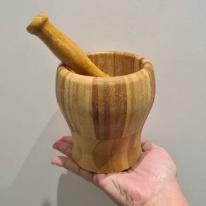 Pilão de Bambu Madeira com Socador Reforçado Cozinha Culinária