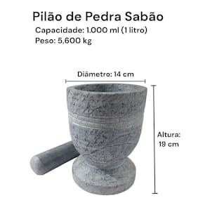 Tradição que Faz Diferença: A pedra sabão é usada há séculos por sua resistência e capacidade de manter a pureza dos sabores.Durabilidade: Com o cuidado adequado, seu pilão pode ser passado de geração para geração, tornando-se um elemento essencial em muitas memórias de famíúde em Primeiro Lugar: A pedra sabão é completamente natural e livre de químicos, garantindo a de sua famí Cuidar do Seu Pilão de Pedra Sabão?Lave com água e sabão neutro, evitando o uso de abrasivos.