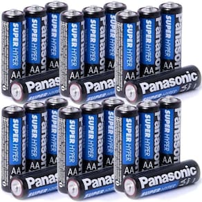 Características Marca: Panasonic Linha: Super Hyper Modelo: AA Tamanho da pilha: Comum Forma: Cilíndrica Formato de venda: Display Unidades por kit: 24 Voltagem nominal 1.5V Recarregável Não