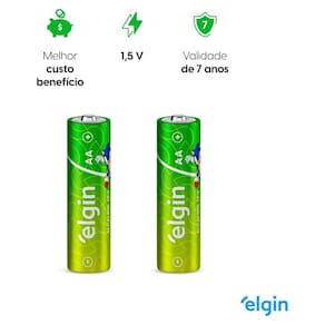 - Marca: Elgin; - Referência: 106317-3; - Voltagem: 1,5V; - Alta Durabilidade; - Sem metais pesados; - Economia; - Peso (Produto): 0,026 kg; - Ideais para brinquedos, controle remotos, lanternas e outros aparelhos que requerem descargas de energia rápidas e fortes; - Foram aprovadas em todos os quesitos e têm ótima relação custo/benefício. Você economiza e ainda conta com pilhas de alta qualidade; - Entre 11 marcas de pilhas do mercado avaliadas em testes do INMETRO, as pilhas Elgin apresentaram um resultado excelente na relação custo por hora útil; - São testadas periodicamente por laboratórios credenciados pelo INMETRO, para garantir a qualidade e conformidade com a resolução Conama 401; - Mas de uma maneira muito mais divertida. Colecione e brinque com essa novidade; - Validade: 7 anos.