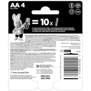 Essas pilhas alcalinas AA de 1,5V são ideais para os dispositivos do dia a dia, como controles remotos e de vídeo game, lanternas, sensores, brinquedos e muito mais. Com sua tecnologia avançada, essas pilhas alcalinas Duracell duram até 10 vezes melhores em comparação às pilhas comuns de zinco-carbono. Os resultados podem variar por dispositivo, mas uma coisa é certa: essas pilhas alcalinas Duracell são a melhor escolha para você!