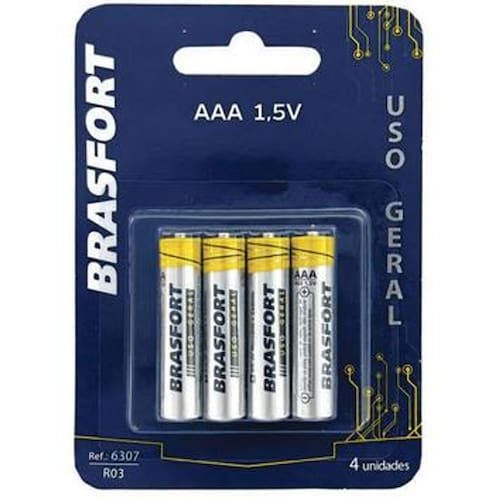 Este produto é um conjunto de 4 pilhas AAA de uso geral da marca Brasfort, conhecida pela sua qualidade e durabilidade.As pilhas são do tipo AAA 1,5V R3P, ideais para uma variedade de aplicações, incluindo controles remotos, aparelhos de rádio e controles de videogame.As pilhas Brasfort são cilíndricas e de tamanho AAA, o que as torna compatíveis com a maioria dos dispositivos que requerem este tipo de pilha. Elas são feitas de Cada kit contém uma 4 unidade, o que significa que você receberá 4 pilhas neste pacote. Com as pilhas Brasfort, você pode ter certeza de que está adquirindo um produto de alta qualidade que atenderá às suas necessidades de energia.