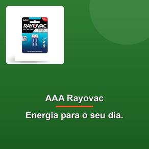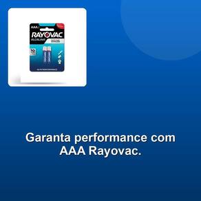 Um poderosa tecnologia com as Pilhas Alcalinas AAA da Rayovac. Especificamente designadas para aparelhos tecnológicos de alto desempenho, nossas pilhas permitem que você realize suas atividades semlimites, com total liberdade e confiança em suas atividades.