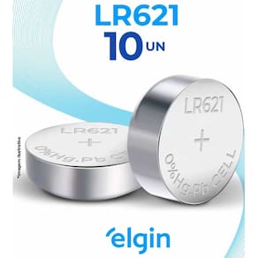 Especificações Técnicas Modelo: Bateria Alcalina LR621 AG1 Tensão nominal (voltagem): 1,5V Dimensões: 2,14 x 6,76 mm Peso do produto: 0,0003 kg Cartela com 10 unidades. Marca: Elgin Ean: 7897013574009