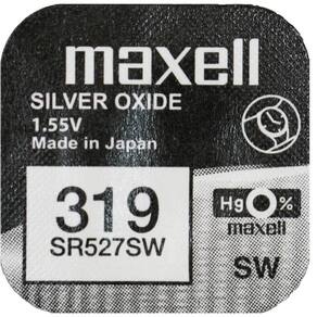 Utilizada em relógios Quartz Fabricação no Japão Marca Maxell Linha Silver Oxide Modelo 319 Tamanho da pilha SR527SW Capacidade 17 mah Forma Botão Formato de venda Cartela Unidades por kit 5 Voltagem nominal 1.5V É recarregável: Não Embalagem 90 Dias Marca: Não Informado Ean: 7890925287210