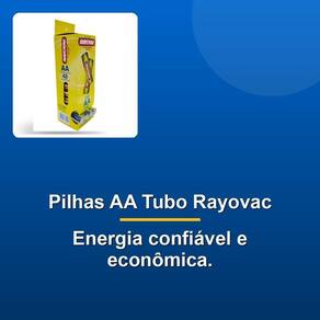 Pilha Comum Aa Tubo C/ 48 Economize e seja eficiente com as Amarelinhas Rayovac! Nossa pilha comum AA tubo apresenta 10862 unidades, ideal para aparelhos que consomem pouca energia, como controles remotos e relógios de parede. Essas pilhas de zinco são a alternativa econômica para seus dispositivos, oferecendo uma vida útil longa e confiável. Além disso, elas são perfeitas para usar em aparelhos que não exigem muito poder, como controles remotos de televisão e relógios de parede.