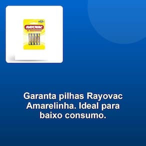 Com a Pilha Rayovac Amarelinha, você pode ter certeza de que está fazendo uma escolha econômica e confiável. Nossa pilha de zinco é a alternativa perfeita para seus dispositivos de baixo consumo de energia.