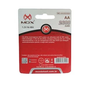 PILHA RECARREGAVEL AA 2600mAh COM 4 UNIDADES MOX