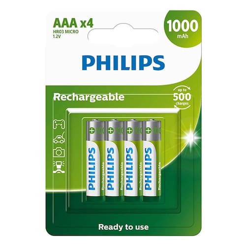 Com as pilhas recarregáveis Philips você garante incontáveis horas de uso para seus aparelhos e desfruta de até 500 carregamentos!