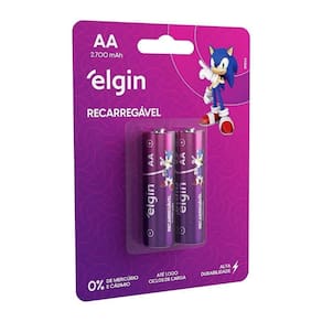 Ecologicamente corretas, as pilhas Elgin não agridem o meio ambiente porque têm 0% de metais pesados em sua composição. Oferecemos uma linha de pilhas e baterias de alta qualidade para melhorar sua vida diária. Excelente escolha para suas necessidades energéticas! A pilha recarregável Elgin 2700mAh blister com 2 unidades é a solução ideal para brinquedos, controle remotos, lanternas e outros aparelhos que requerem descargas de energia rápidas e fortes.