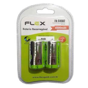 2 Pilhas Recarregáveis Tipo C Média 4500mah Flex