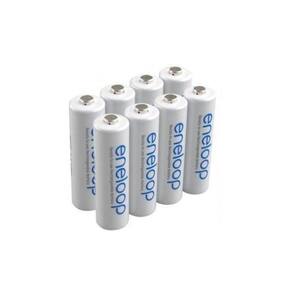 O modelo panasonic 2000/pk8aa consiste em uma embalagem blister com 8 baterias eneloop aa ni-mh da panasonic. Estas baterias são superiores às tradicionais baterias alcalinas aa por serem recarregáveis e se manterão carregadas por um período de 3 anos.