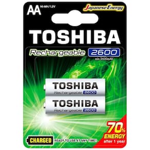 CONTEÚDO DA EMBALAGEM: Cartela com 2 Pilhas Recarregáveis Toshiba AA 2600mAh - ;72473