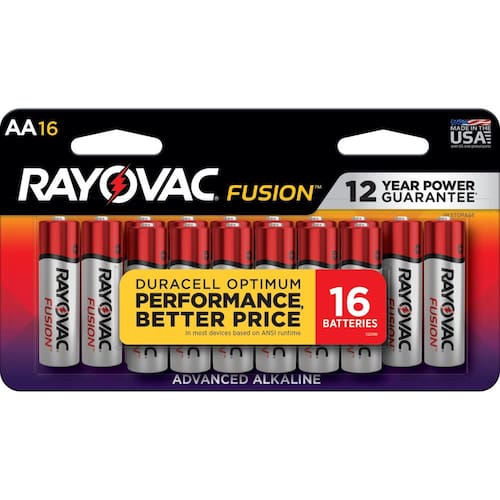 - Pilhas AA alcalinas premium, pacote com 16 baterias Rayovac Fusion