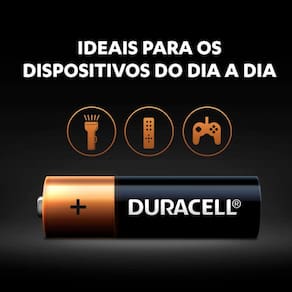A pilha Alcalina Duracell possui potência confiável e prolongada Sua química e seu design aperfeiçoados garantem o melhor desempenho em equipamentos de uso geral Design aperfeiçoado e melhor desempenho Ideal para equipamentos em geral Embalagem