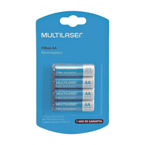 - Marca: Multilaser - Linha: Recarregável - Modelo: CB052 - Tamanho da pilha AA - Forma Cilíndrica - Formato de venda; Kit - Unidades por kit4