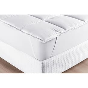 Pillow Top King Suave Extra Macio em Micropercal 200 fios O Pillow Top Suave foi desenvolvido para dar mais conforto e durabilidade para o seu colchão, excelente para uma noite de sono revigorante, de fácil encaixe e manuseio na hora de lavar o produto, pode ser lavado na máquina em lavagem leve. É a camada extra de conforto no colchão que você precisa. Afinal você merece ----------------------------------------------------------- Ele possui o toque de Silicone que deixa a cama super macia proporcionando mais conforto, super prático de pôr sobre a cama com elásticos para fixação. Fabricado em tecido 100% poliéster, com 200 Fios, possui acabamento com elástico, enchimento em manta siliconada volumosa. Sua principal característica é adicionar uma camada extra de maciez e conforto ao seu colchão garantindo suas noites de sono mais saudáveis e tranquilas ----------------------------------------------------------- Ficha Técnica: - Nome do Produto: Pillow Top Toque de Plumas King - Tamanho: 1,93m x 2,03m x até 40cm alt. - Material: 100% Poliéster;- Marca: Nathalia Enxovais