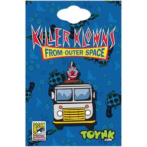 - Sem complicações: direto da pequena cidade de Crescent Cove vem este broche de colecionador exclusivo inspirado em Killer Klowns from Outer Space. Fuja de alienígenas de circo sedentos de sangue com este broche de esmalte que é edição limitada de apenas 1.000 peças.