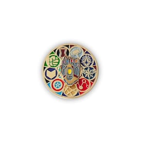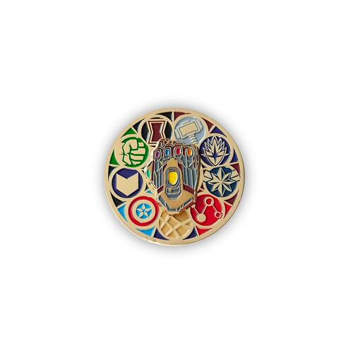 Quando a batalha épica com Thanos termina, o clímax entre os Vingadores e o Titã Louco deixa os fãs ansiosos. Este alfinete representa os esforços feitos pelos Vingadores para aproveitar o poder das Joias do Infinito para desfazer o caos causado por Thanos. Com a Manopla Stark entre os símbolos de cada membro dos Vingadores, este broche é uma reminiscência dos sacrifícios e lutas enfrentados por todos os heróis. Gire a luva no centro do pino e lute ao lado de seus Vingadores favoritos!