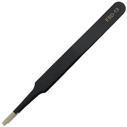 A pinça anti estática Vetus ESD-13 é uma ferramenta de precisão projetada para manipular componentes eletrônicos sensíveis, como chips, resistores e capacitores. Com um design reto e bico chato, ela permite um manuseio seguro e preciso desses componentes, evitando danos causados por eletricidade estática.